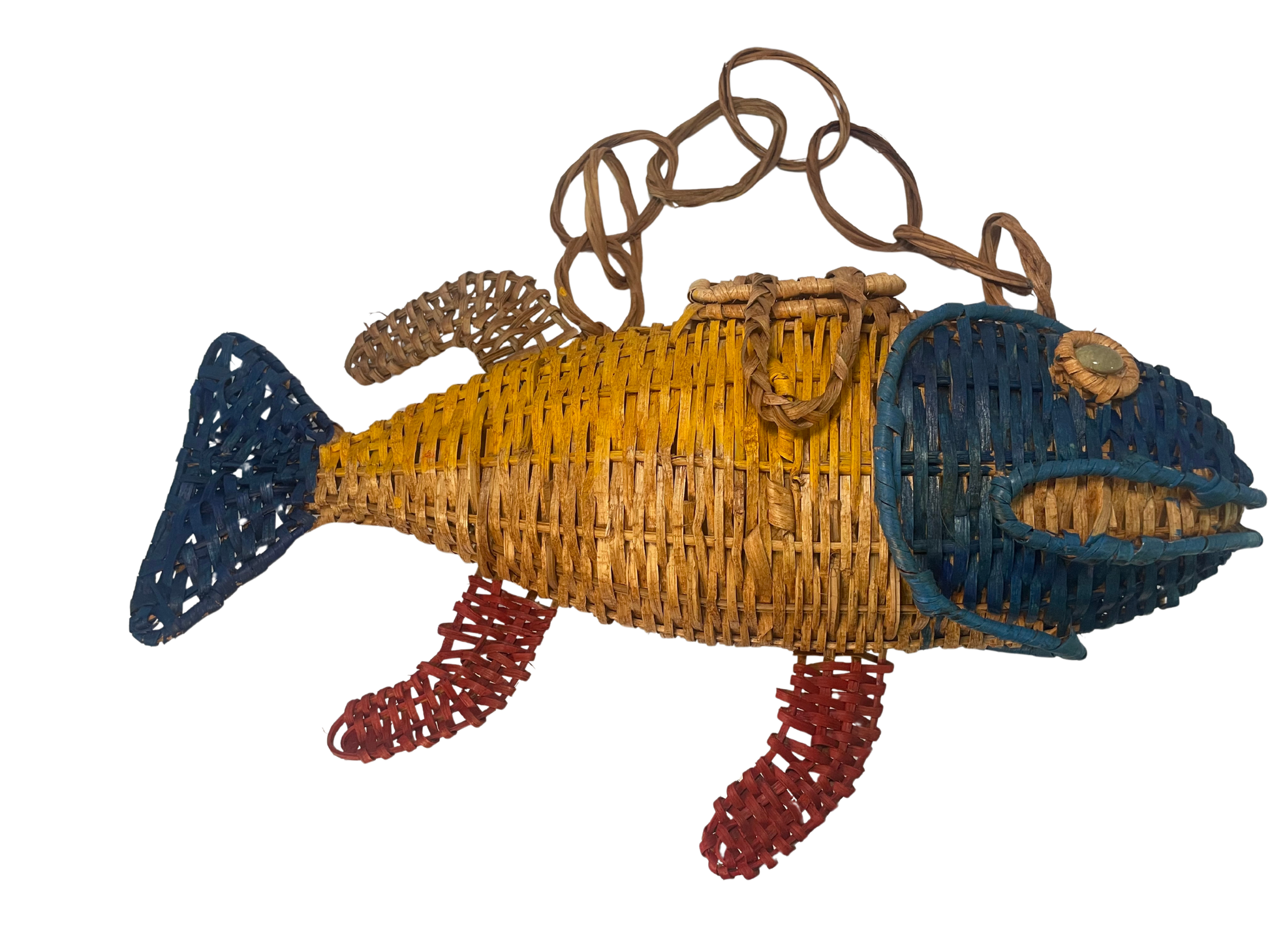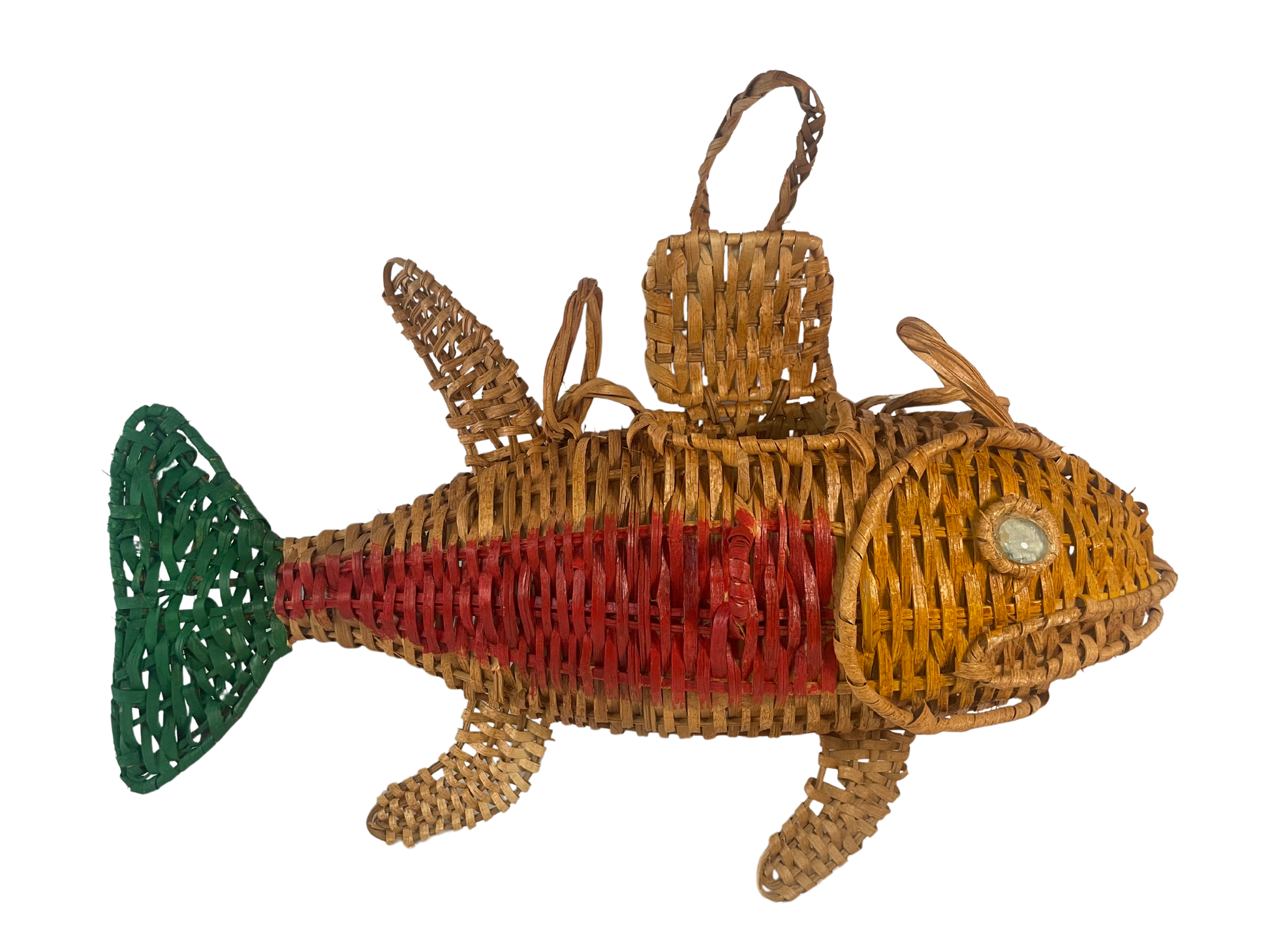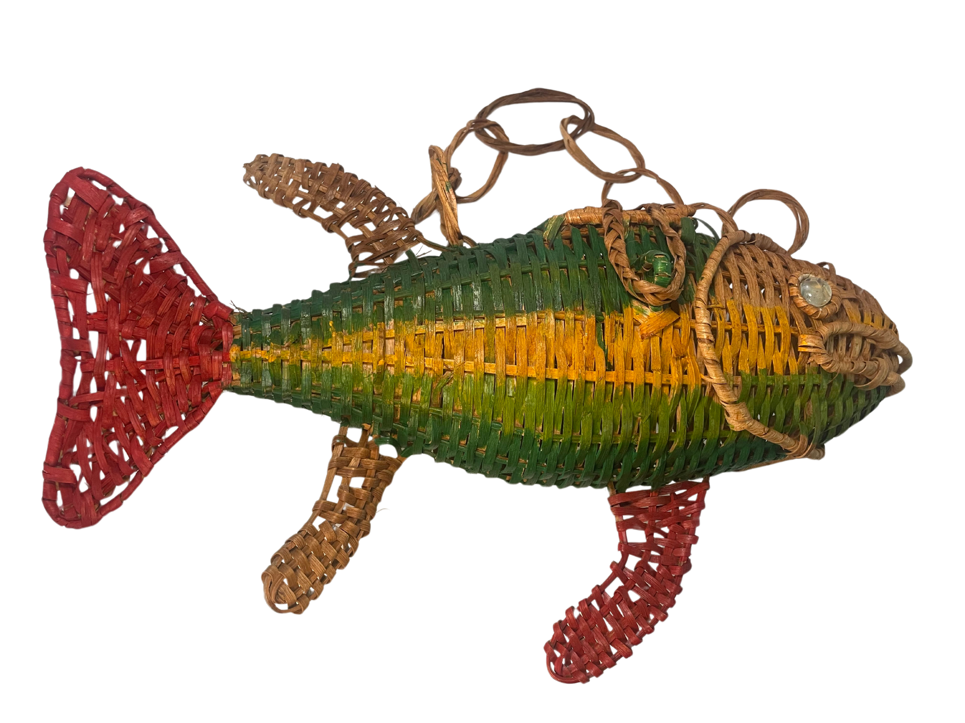 Juco el bejuco es un pez artesanal tejido a mano en fibras de bejuco natural, símbolo del mar colombiano y del arte de la cestería tradicional. Su diseño autentico y lleno de vida lo convierte en una pieza cultural, ideal como objeto decorativo o personaje de colección dentro del mundo CUMBÉ.