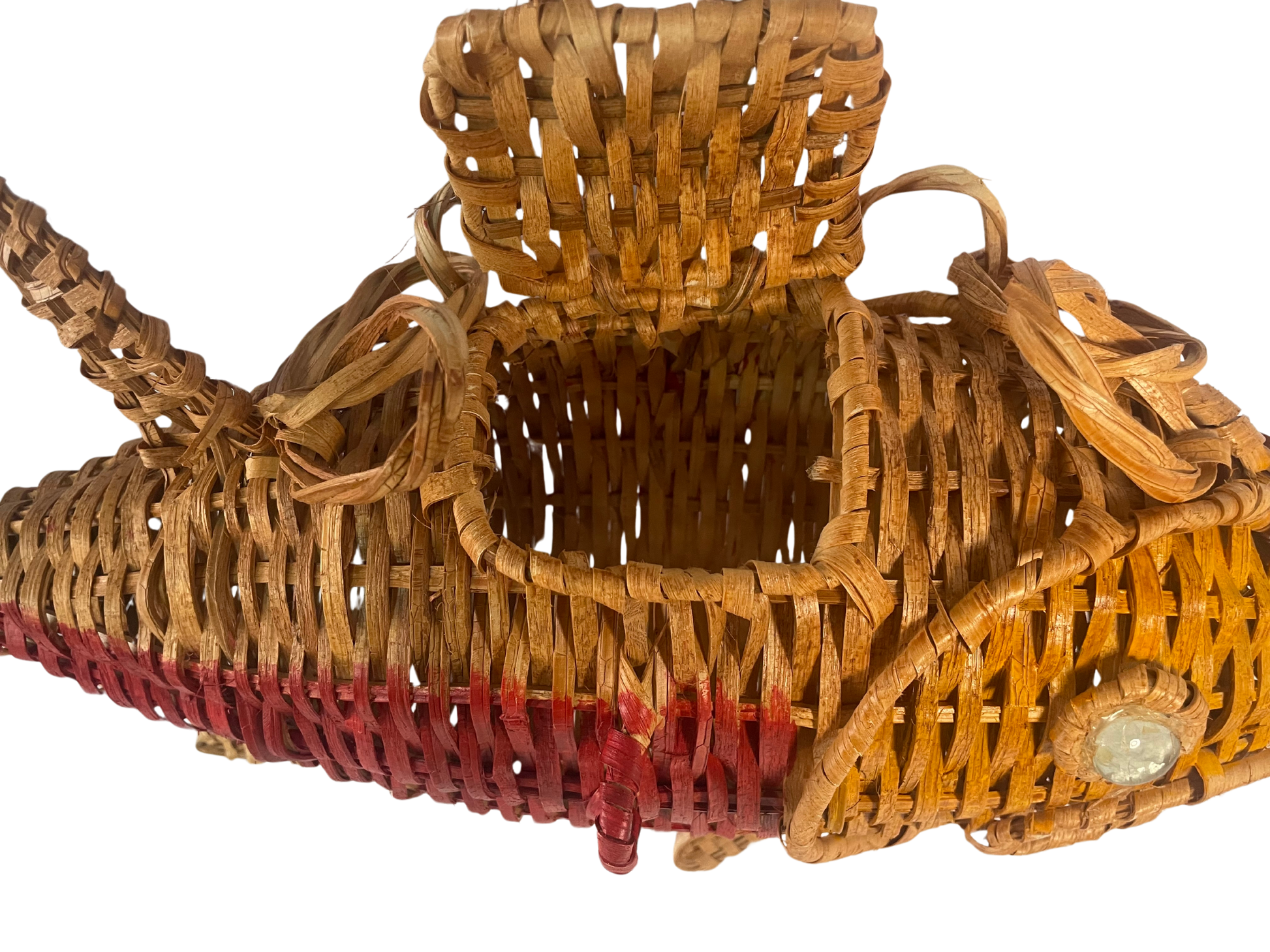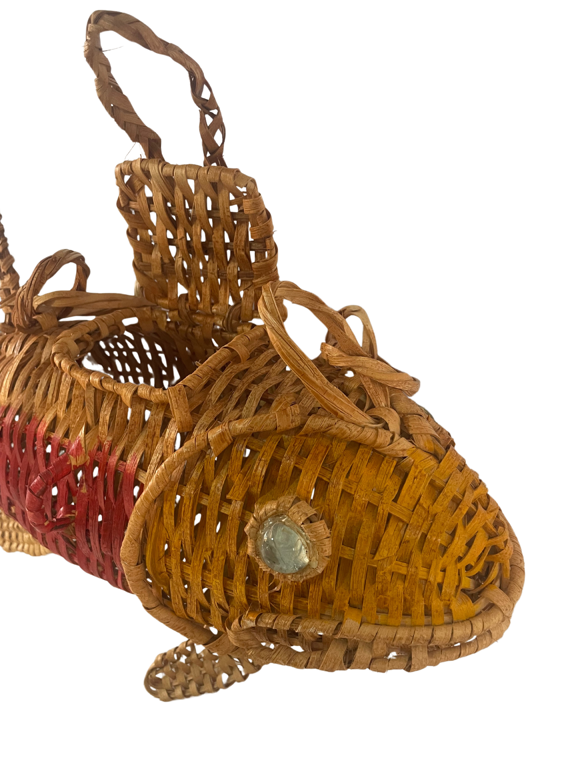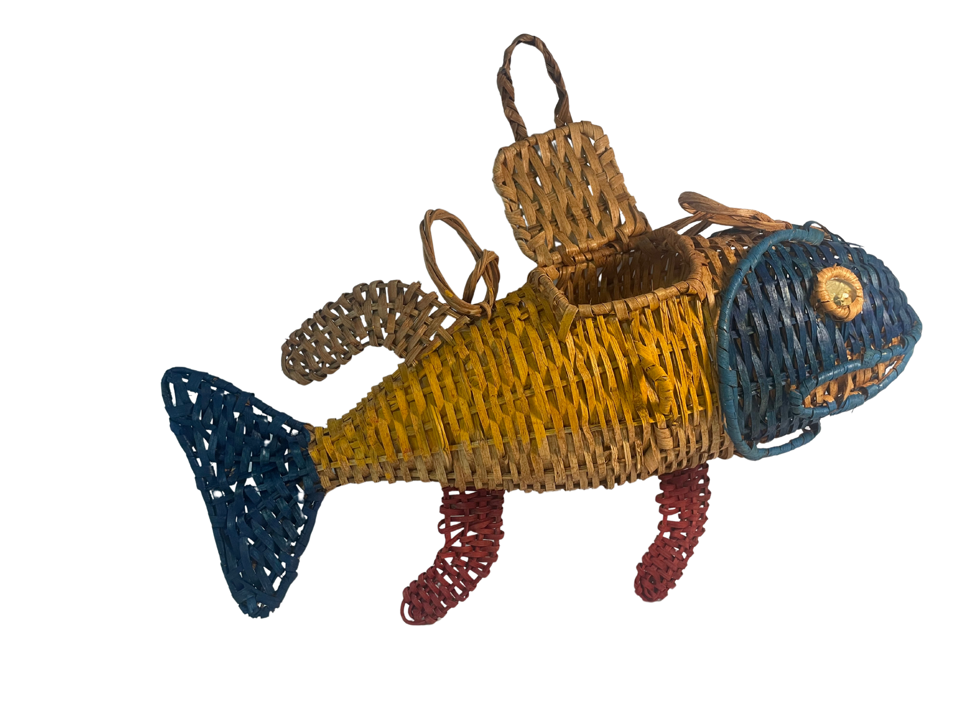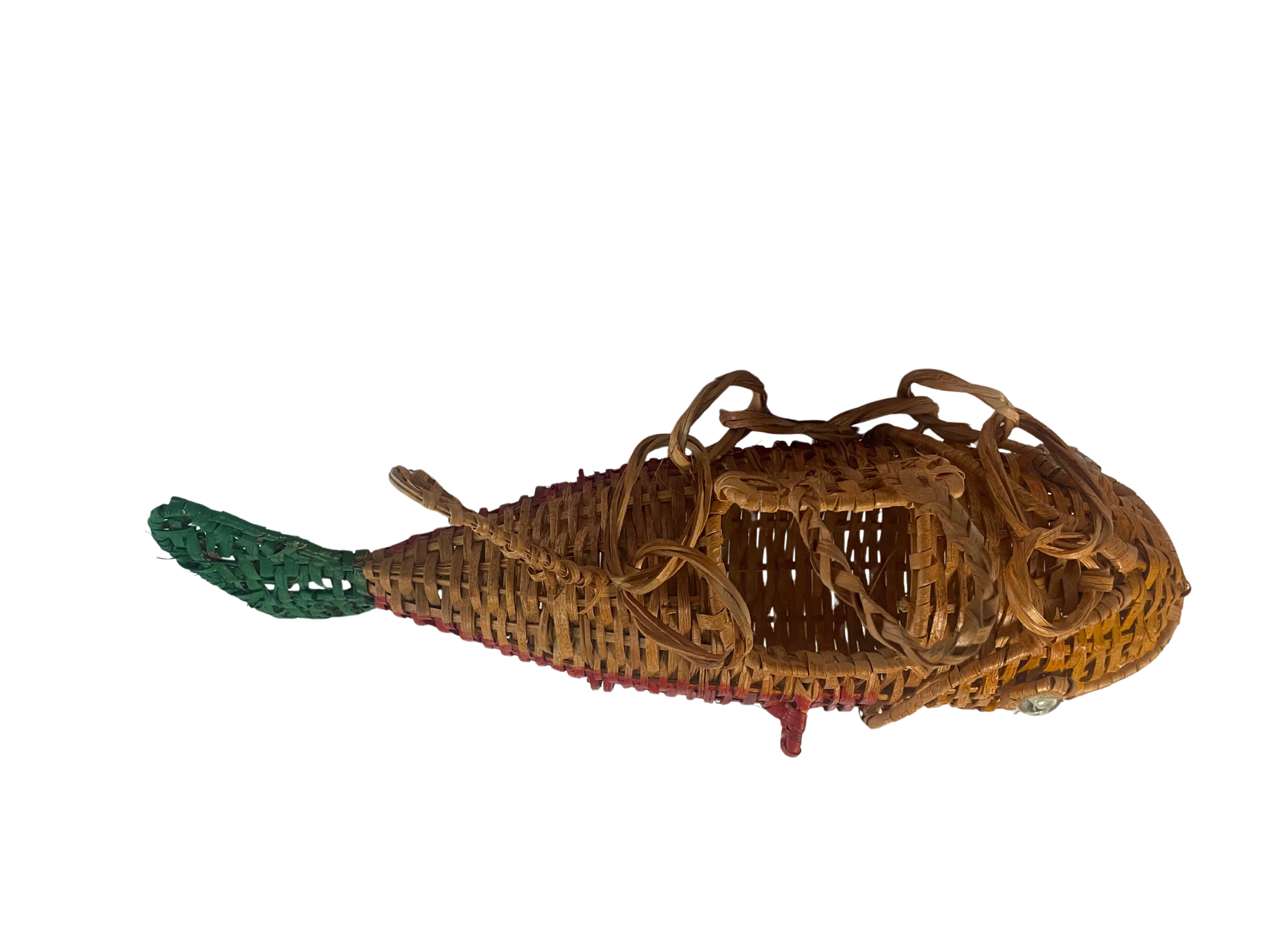 Juco el bejuco es un pez artesanal tejido a mano en fibras de bejuco natural, símbolo del mar colombiano y del arte de la cestería tradicional. Su diseño autentico y lleno de vida lo convierte en una pieza cultural, ideal como objeto decorativo o personaje de colección dentro del mundo CUMBÉ.