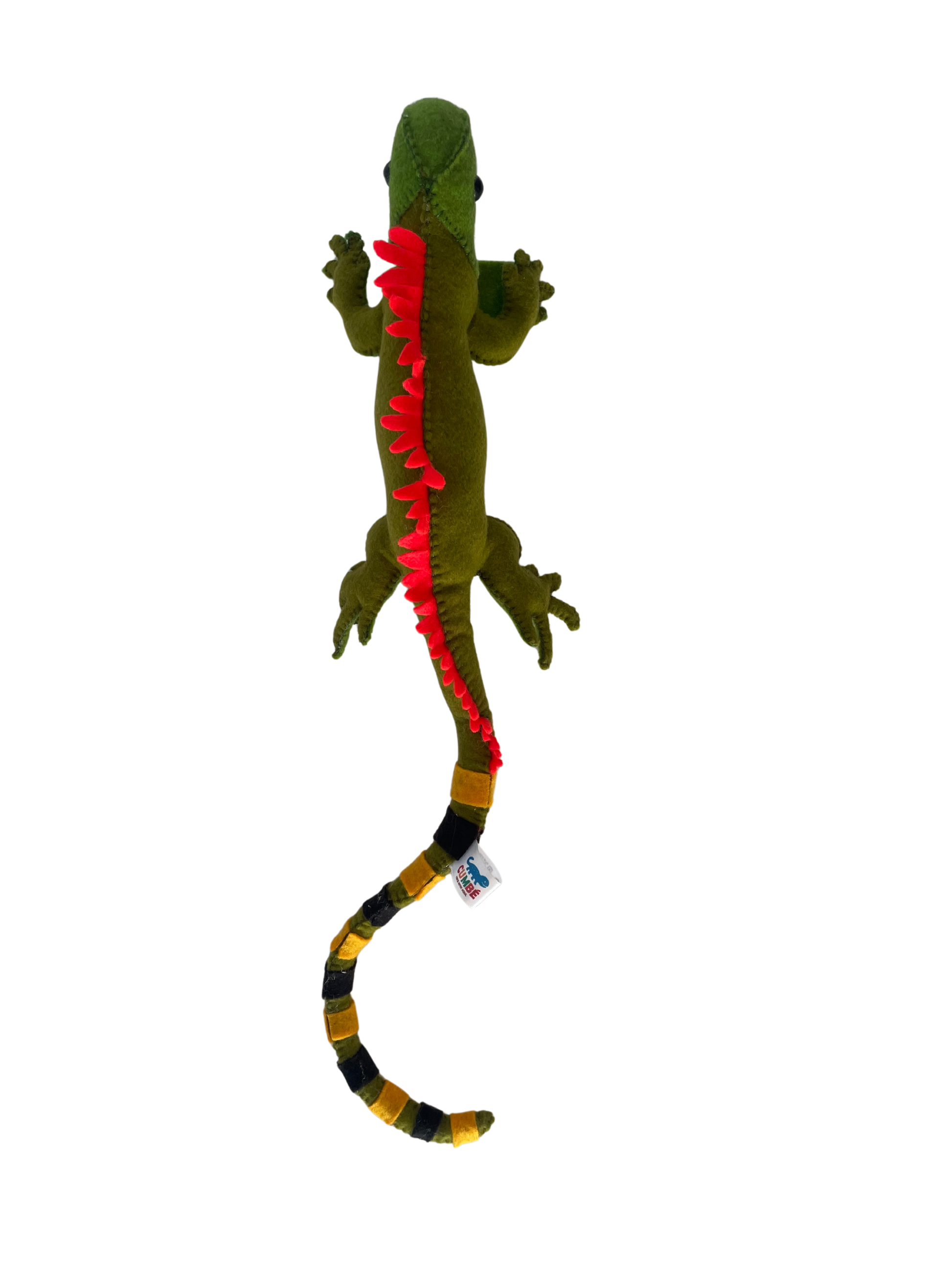 Peluche artesanal inspirado en la iguana verde, reptil característico de la fauna colombiana. Elaborado 100% con costura manual en paño lency y relleno con fibra siliconada hipoalergénica. Sus colores vivos y su cola rayada lo convierten en una pieza llena de personalidad, ideal para niños y coleccionistas que valoran lo artesanal y natural.